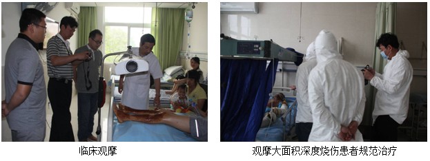 2012年5月16日湖南湖鐵醫(yī)院院長譚煒、業(yè)務(wù)院長戚小培及燒傷科楊自強主任一行來到四川成都,17日湖南譚煒院長一行在四川省中西醫(yī)結(jié)合學(xué)會邱衛(wèi)東秘書的陪同下來到什邡燒傷醫(yī)院,什邡燒傷醫(yī)院程德躍院長代表醫(yī)院熱情的接待了來自遠(yuǎn)方的朋友。在程德躍院長陪同下大家來到病房,程院長向大家介紹了患者接受再生技術(shù)治療的情況,同時毫無保留的將自己應(yīng)用再生技術(shù)的心得和體會告訴來賓。在臨床觀摩過程中來賓們對醫(yī)院制作精美的各種再生技術(shù)及疤痕治療展板產(chǎn)生了極大興趣,業(yè)務(wù)院長戚小培還用相機一一記錄。為讓來賓更加深刻的了解再生技術(shù),程院長還帶領(lǐng)大家來到ICU病房觀摩了95%燒傷患者的規(guī)范治療。