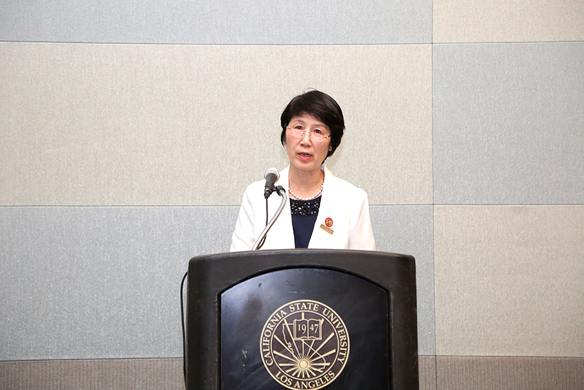 洛杉磯州大副校長珍妮特·戴爾代表州大校長對(duì)來到洛杉磯州大的各界朋友表示歡迎,并表示傳承徐大夫的名字是洛杉磯州大的榮耀。
