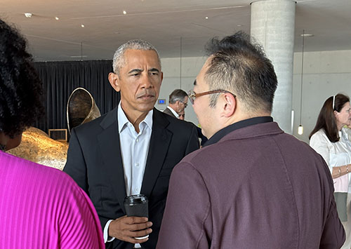 當(dāng)?shù)貢r間6月22日下午,美寶集團董事局主席徐鵬與美國第44任總統(tǒng)奧巴馬再次聚首于希臘雅典-Stavros Niarchos基金會文化中心。這是奧巴馬總統(tǒng)為奧巴馬基金會長期支持者舉辦的一個小型私人聚會。徐鵬與奧巴馬總統(tǒng)親切交談并向總統(tǒng)請教如何成功舉辦APEC峰會。近二十年來美國只在2008年奧巴馬總統(tǒng)任內(nèi)作為東道主舉辦過一次APEC峰會。而徐鵬目前是舊金山APEC2023協(xié)辦單位灣區(qū)委員會的APEC工作組組長。奧巴馬總統(tǒng)給出了他的經(jīng)驗和建議并予以鼓勵。