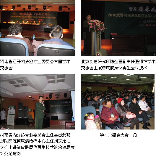 2010年4月20日,在河南省武警醫(yī)院糖尿病治療中心召開了河南省第一次糖尿病專業(yè)學(xué)術(shù)交流會(huì),會(huì)議上首先河南省內(nèi)分泌專業(yè)委員會(huì)主任委員、武警總隊(duì)醫(yī)院糖尿病治療中心主任劉宏斌與大家一起分享了他應(yīng)用原位再生醫(yī)療技術(shù)治愈糖尿病壞死足患者的經(jīng)驗(yàn),同時(shí)將北京燒傷創(chuàng)瘍研究所副主任醫(yī)師陳全喜介紹給大家。陳全喜主任向各位專家介紹了原位再生醫(yī)療技術(shù),應(yīng)用該技術(shù)治療糖尿病皮膚潰瘍、糖尿病壞死足的方法與換藥技巧,并利用臨床大量的病例資料及圖片向大家展示了再生醫(yī)療技術(shù)良好的治療效果。陳主任精彩的演講及再生醫(yī)療技術(shù)神奇的治療結(jié)果引起了會(huì)議上的學(xué)者、專家的高度重視,專家們認(rèn)為這是目前科學(xué)前沿的最新科研成果,并表示壞死足趾不截趾、肢是當(dāng)前醫(yī)生們認(rèn)為最完美的治療結(jié)果,同時(shí)給患者帶來終身的幸福,很值得推廣使用。