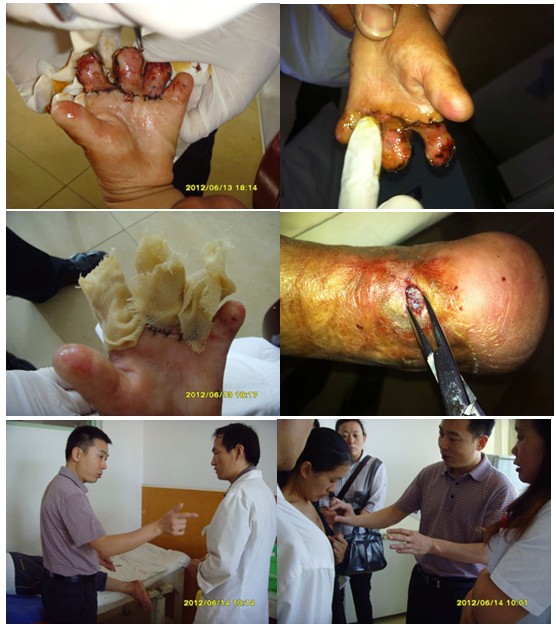 會后數名醫(yī)生圍著王主任就他們在臨床上的一些棘手的問題向王主任請教,耳鼻喉科的醫(yī)生更是把病人都帶到會場。王主任當場指導。當日下午講課結束后及第二天上午,王主任兩次應邀到該院骨科、燒傷整形及腫瘤外科去會診,先后為一例骨科創(chuàng)瘍、一例小兒燒傷后并左手指攣縮畸形整形術后皮片生長不良患兒一例左足跟慢性潰瘍及一例胸部增生性瘢痕患者進行了會診及臨床指導,醫(yī)務人員都非常感謝王主任毫不保留的技術傳授。