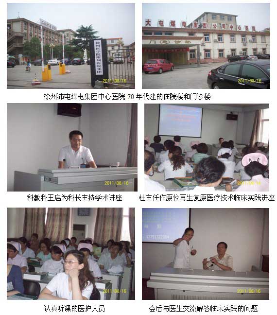 2011年8月16日,應(yīng)徐州沛屯煤電集團(tuán)中心醫(yī)院科教科王啟為科長(zhǎng)的邀請(qǐng),中國(guó)中西醫(yī)結(jié)合學(xué)會(huì)燒傷專(zhuān)業(yè)委員會(huì)委員、北京美寶燒傷創(chuàng)瘍研究所臨床部杜福勤主任和學(xué)會(huì)駐南京辦事處劉恒主任、周銀梅一起在該院舉辦國(guó)家中醫(yī)藥管理局醫(yī)學(xué)繼教項(xiàng)目—再生復(fù)原醫(yī)療技術(shù)學(xué)術(shù)講座。