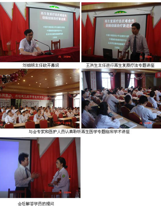 2011年5月24日,應(yīng)黔西南州人民醫(yī)院地邀請,中國中西醫(yī)結(jié)合學(xué)會燒傷專業(yè)委員會常委、中國燒傷創(chuàng)瘍雜志社副總編輯、北京美寶燒傷創(chuàng)瘍研究所副所長,臨床研究部主任王洪生研究員在貴州省中西醫(yī)結(jié)合學(xué)會燒傷專業(yè)委員會辦公室張志明的陪同下來到該院進行“再生復(fù)原療法在難治性創(chuàng)瘍創(chuàng)面治療的新進展”專題學(xué)術(shù)講座。