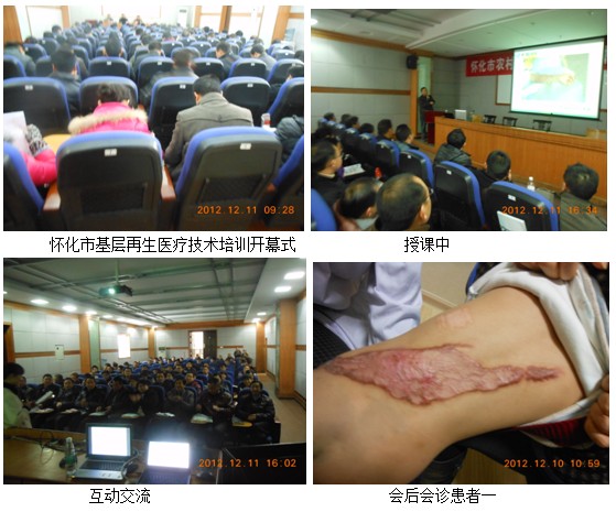 12月11日由衛(wèi)生局組織的懷化地區(qū)鄉(xiāng)鎮(zhèn)衛(wèi)生院,社區(qū)醫(yī)院的衛(wèi)生適應技術(shù)培訓在懷化第一人民醫(yī)院順利舉行,中國中西醫(yī)結(jié)合學會燒傷專業(yè)委員會常委、北京燒傷創(chuàng)瘍研究所副所長、《中國燒傷創(chuàng)瘍雜志》常委編委金黨軍教授,再次來到懷化。在這次培訓會上金教授就“人體再生復原療法在燒傷及難治性創(chuàng)傷、潰瘍創(chuàng)面治療臨床規(guī)范化應用及新進展”進行了專題講座。金教授結(jié)合了大量的臨床病例圖片,針對不同深度的燒傷創(chuàng)面及各類難愈性創(chuàng)傷、潰瘍創(chuàng)面的規(guī)范化處理方法與技巧、注意事項及燒傷疤痕康復治療的等進行了細致講解。在會的醫(yī)務員看到大量真實的臨床病例資料圖片后,都被再生醫(yī)療技術(shù)良好的治療效果所震撼與折服。此次講座深受會者的歡迎,再生復原技術(shù)為醫(yī)護人員在臨床上提供了一條新的治療思路,開闊了醫(yī)護工作者的視野,增長了新的知識。金教授通過現(xiàn)場對患者的燒傷創(chuàng)面的會診、臨床指導,更清楚直觀的解決了臨床的實際問題。