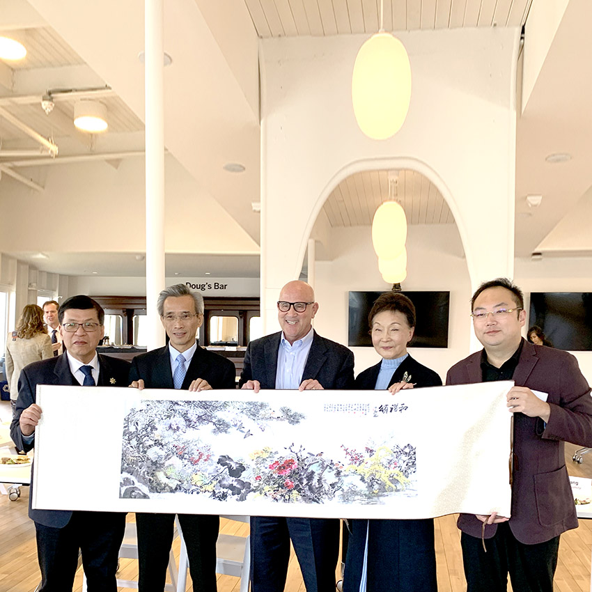 美東時間2023年2月21日,中國人民對外友好協(xié)會會長林松添率團(tuán)訪問加州灣區(qū)委員會(Bay Area Council )位于舊金山市9號碼頭 Klamath 游輪上的總部。這是中美兩國民間交流因疫情隔絕三年之后首個到訪灣區(qū)委員會的中國團(tuán)隊。