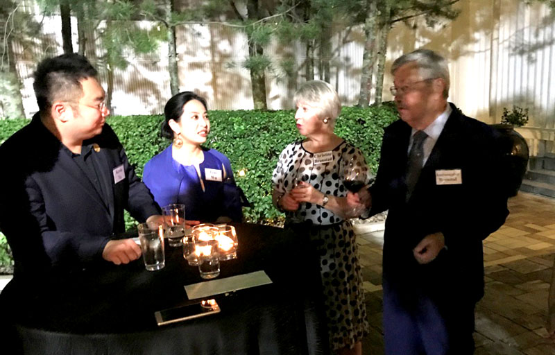 晚宴開(kāi)始前,布蘭斯塔德致辭感謝在場(chǎng)所有對(duì)促進(jìn)中美關(guān)系做出貢獻(xiàn)的工作人員和政企精英,并回顧了他與習(xí)主席友誼的淵源以及他與現(xiàn)任美國(guó)總統(tǒng)的友好關(guān)系。席間大使與夫人特地來(lái)到徐鵬桌上與其暢聊20多分鐘,回顧了雙方數(shù)次見(jiàn)面的友誼之旅,特別是2015年9月22日在習(xí)主席訪美的西雅圖站,時(shí)任艾奧瓦州長(zhǎng)的布蘭斯塔德和加州州長(zhǎng)顧問(wèn)的徐鵬共聚省州長(zhǎng)論壇,當(dāng)時(shí)布蘭斯塔德攜帶了習(xí)主席早年在艾奧瓦州與他的合影老照片請(qǐng)習(xí)主席簽字留念,習(xí)主席收下了但沒(méi)有當(dāng)場(chǎng)簽還。出人意料的是當(dāng)晚的宴會(huì)上習(xí)主席帶來(lái)了簽署其姓名和日期并已經(jīng)裝裱好的老照片贈(zèng)予布蘭斯塔德,令其感動(dòng)萬(wàn)分,這張珍貴的老照片被布蘭斯塔德隨身攜帶,擺放在了其大使官邸的會(huì)客廳中。這件事也深深觸動(dòng)了徐鵬,使其對(duì)習(xí)主席的為人和其領(lǐng)導(dǎo)下的中國(guó)的前途充滿(mǎn)信心。