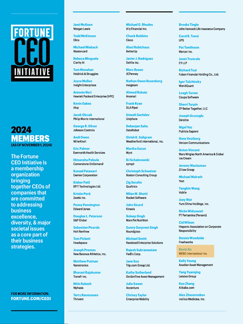 2024 年 12 月,《財富》雜志跨年期刊正式公布了財富 CEO 倡議 2024 年名單,美寶集團(tuán)董事局主席、APEC 2023 籌委會主席徐鵬再度成功入列。自 2017 年財富 CEO 倡議發(fā)起以來,這已是徐鵬第五次登上該名單。