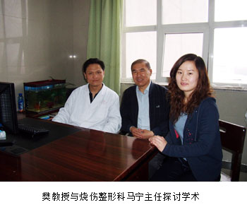 2009年4月8日中國中西醫(yī)結(jié)合學(xué)會燒傷專業(yè)委員會常委、北京燒傷創(chuàng)瘍研究所研究員、中國燒傷創(chuàng)瘍雜志社常務(wù)編委、臨床部專家樊兆宗教授來到中國中西醫(yī)結(jié)合學(xué)會燒傷專業(yè)委員會吉林省辦事處指導(dǎo)再生醫(yī)療復(fù)原技術(shù)推廣工作。吉林省辦事處全體工作人員深感受益,紛紛表示更加明確了工作目標,將通過這次樊教授的指導(dǎo)對自己的工作做出長遠整體的規(guī)劃,早播種早結(jié)果。