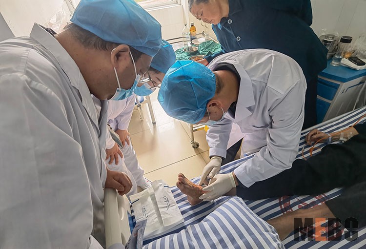 2021年10月21日,北京榮祥再生醫(yī)學研究所副所長、《中國燒傷創(chuàng)瘍雜志》編委金黨軍教授應(yīng)邀來到遼寧省健康產(chǎn)業(yè)集團阜新礦總醫(yī)院手足外科進行再生醫(yī)療技術(shù)交流及現(xiàn)場觀摩指導(dǎo),參加本次交流的還有阜新市中心醫(yī)院及阜蒙縣人民醫(yī)院的專家團隊,金教授與大家就糖尿病足患者的治療情況及創(chuàng)面科室的發(fā)展情況進行詳細探討,并進行了現(xiàn)場實際換藥操作,受到家屬和全體醫(yī)護人員的好評與認可。