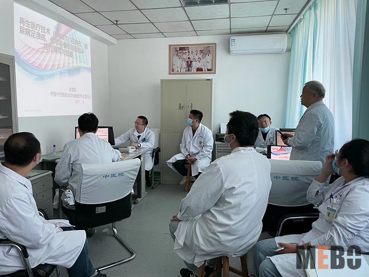 2021年10月18日,北京榮祥再生醫(yī)學研究所副所長、《中國燒傷創(chuàng)瘍雜志》編委金黨軍應(yīng)邀來到丹東中醫(yī)院創(chuàng)面修復(fù)科,就科室燒傷創(chuàng)面患者治療情況以及創(chuàng)面修復(fù)??瓢l(fā)展進行了詳細的探討,他分享了再生醫(yī)療技術(shù)臨床應(yīng)用規(guī)范,受到醫(yī)護人員的支持和好評。