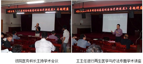 2012年10月29日,應(yīng)該院邀請(qǐng)中國中西醫(yī)結(jié)合學(xué)會(huì)燒傷專業(yè)委員會(huì)常委兼秘書、《中國燒傷創(chuàng)瘍雜志》副總編輯、北京燒傷創(chuàng)瘍研究所副所長、臨床研究部主任王洪生研究員到該醫(yī)院進(jìn)行“再生復(fù)原療法在燒傷及難治性創(chuàng)傷、潰瘍創(chuàng)面治療臨床規(guī)范化應(yīng)用及新進(jìn)展”專題講座。講座開始前的當(dāng)日下午,王主任應(yīng)邀并在該醫(yī)院醫(yī)務(wù)科長兼普外、泌尿、胸外、燒傷外科主任的陪同下首先深入該科病房為1例高壓電燒傷3個(gè)月創(chuàng)面不愈的慢性潰瘍創(chuàng)面、1例老年燒傷患者、1例少兒燒傷患者、1例左臀部蜂窩織炎患者、1例左小腿潰瘍患者進(jìn)行了會(huì)診,然后又到該醫(yī)院骨科、神經(jīng)外科病房在該醫(yī)院骨科主任的陪同下為1例糖尿病合并左小腿骨科創(chuàng)瘍患者進(jìn)行了會(huì)診。專題學(xué)術(shù)講座于當(dāng)日晚上7點(diǎn)半在該醫(yī)院會(huì)議室舉行,該院燒傷科、骨科、普外科、腫瘤科、內(nèi)科、皮膚科和婦產(chǎn)科的相關(guān)專業(yè)200余名專家及醫(yī)護(hù)人員參加了學(xué)術(shù)會(huì)議。在專題學(xué)術(shù)講座中,王主任結(jié)合了大量的臨床病例圖片,針對(duì)不同深度的燒傷創(chuàng)面及各類難愈性創(chuàng)傷、潰瘍創(chuàng)面的規(guī)范化處理方法與技巧、注意事項(xiàng)等進(jìn)行了細(xì)致地講解。在會(huì)的醫(yī)護(hù)人員看到大量真實(shí)的臨床病例資料圖片后,都被再生醫(yī)療技術(shù)良好的治療效果所震撼與折服。此次講座深受會(huì)者的歡迎,再生復(fù)原技術(shù)為醫(yī)護(hù)人員在臨床上提供了一條新的治療思路,開闊了醫(yī)護(hù)工作者的視野,增長了新的知識(shí)。