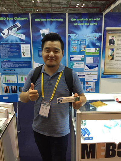 一位來自俄羅斯的帥哥客戶,在聽了美寶工作人員對(duì)美寶國際以及徐榮祥教授的介紹之后,表示美寶的燒傷與創(chuàng)傷的科技成果將會(huì)幫助很多俄羅斯病人恢復(fù)重生,美寶的產(chǎn)品正是他們苦苦尋找的,流露出一種“眾里尋他千百度”的惆悵與“那人卻在燈火闌珊處”的驚喜。臨走的時(shí)候,帥哥不僅送給美寶工作人員一瓶伏特加作為禮物,還特地對(duì)著美寶的LOGO豎起一個(gè)大拇指,連聲稱“贊”。