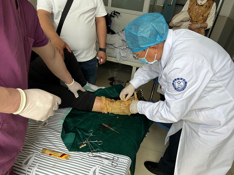 2025年4月23日, 應(yīng)東莞市中西醫(yī)結(jié)合醫(yī)院手外科及東莞市企石醫(yī)院創(chuàng)面修復(fù)科二位主任邀請,中國中西醫(yī)結(jié)合學(xué)會(huì)燒傷專業(yè)委員會(huì)常務(wù)委員、《中國燒傷創(chuàng)瘍雜志》副總編輯王洪生,來到上述二家醫(yī)院對(duì)糖足及壓瘡病人會(huì)診指導(dǎo),并給出了治療方案和建議,受到主任及醫(yī)護(hù)人員的認(rèn)可及好評(píng)!