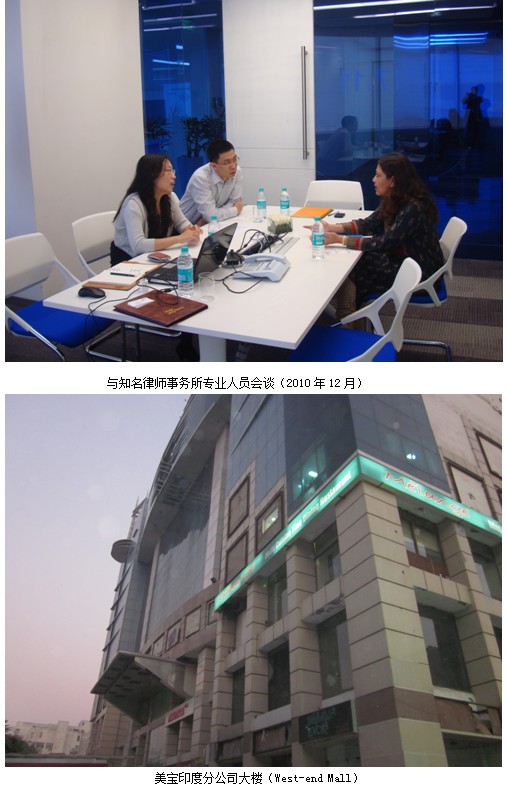 2010年下半年,國際市場集團市場部印度工作小組對印度外資投資政策、醫(yī)藥行業(yè)的特殊要求、公司組建細節(jié)與程序、公司運營、稅務、審計等進行了深入的研究和評估,并初步確定了美寶印度分公司的組建與運營初步計劃。經董事局批準,2011年2月正式全面啟動美寶印度分公司項目,在我方的積極努力下,與NEERAJ CO簽訂了公司注冊代理協(xié)議并啟動了MEBO Pharmaceutical (India) Pvt Ltd 在印度新德里的全面注冊工作,公司目前已經擁有營業(yè)執(zhí)照、自由進出口證書以及藥品經營證書等相關證書,為全面運營打下了堅實基礎。