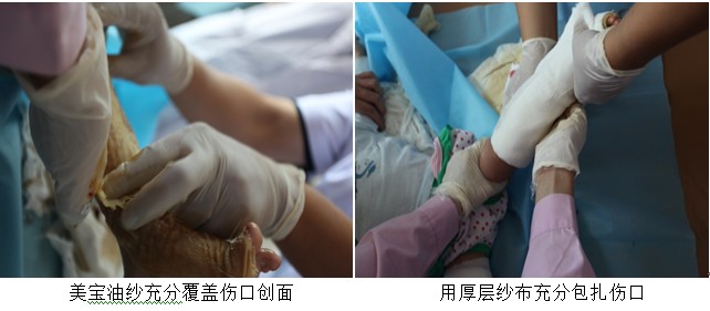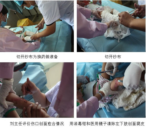 接下來我們看到的病人,是1個(gè)5個(gè)月大的小嬰兒,遇到沸水不幸,雙下肢燙傷其中左下肢較嚴(yán)重。