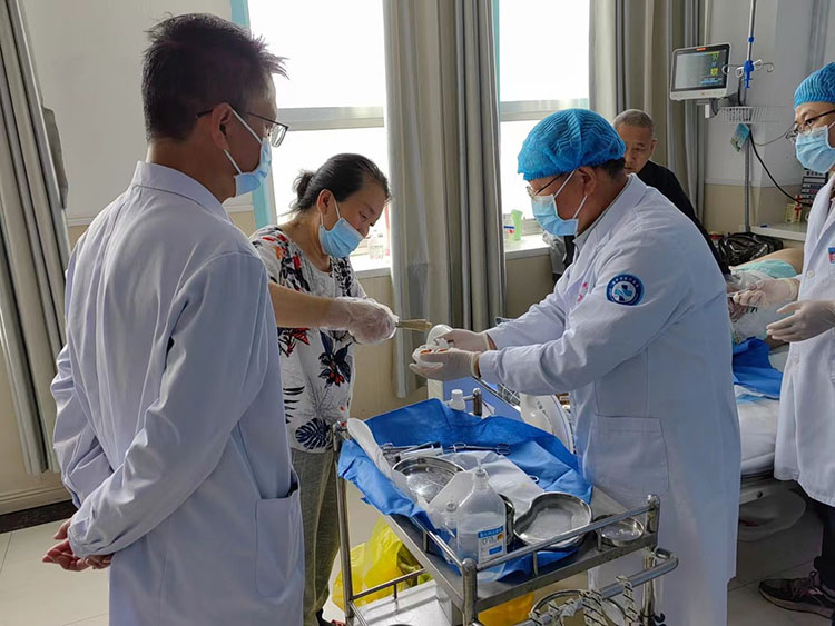 2024年4月12日,應(yīng)湖北省孝感市應(yīng)城市中醫(yī)醫(yī)院肛腸科陳培彥主任邀請,《中國燒傷創(chuàng)瘍雜志》編委、燒傷創(chuàng)瘍再生醫(yī)療技術(shù)臨床專家張強,來到該院對一例意外燒傷的肛腸病人進行了會診,現(xiàn)場運用再生醫(yī)療技術(shù)示范換藥講解細節(jié),受到大家好評!