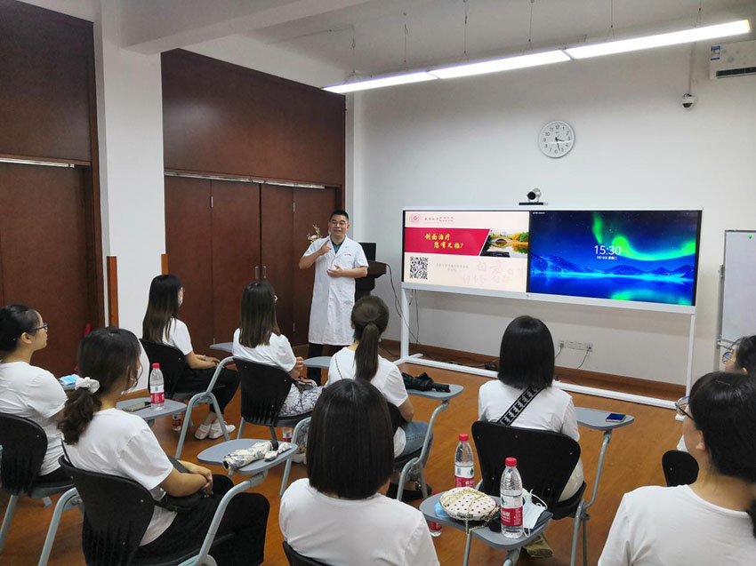 下午一行人來(lái)到湘雅三醫(yī)院,燒傷整形科主任,博士生導(dǎo)師周建大教授及燒傷整形科賀全勇教授、燒傷創(chuàng)瘍?cè)偕t(yī)療專家金黨軍教授進(jìn)行了再生醫(yī)療技術(shù)理論講座,美寶國(guó)際班師生團(tuán)一行參觀了科室,對(duì)再生醫(yī)療技術(shù)的應(yīng)用和發(fā)展有了更加深刻的認(rèn)知。