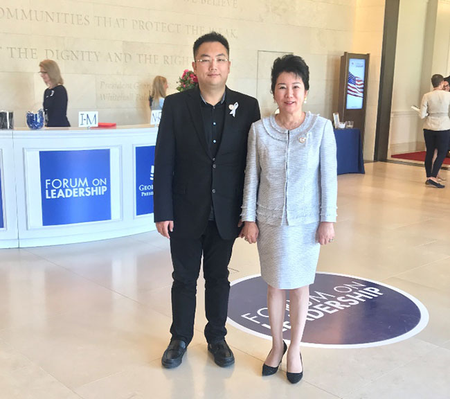 2018年4月18-20日,在美國得克薩斯州達(dá)拉斯市喬治•布什總統(tǒng)中心舉行為期三天的領(lǐng)導(dǎo)力論壇系列活動(dòng),前總統(tǒng)喬治•布什及其夫人勞拉•布什,前副總統(tǒng)切尼及其夫人、前國務(wù)卿賴斯女士、前國會(huì)議長博納先生以及亞馬遜創(chuàng)始人CEO貝佐斯先生等重要嘉賓出席本次論壇。應(yīng)布什總統(tǒng)中心的邀請(qǐng),美寶集團(tuán)董事局主席及國際再生醫(yī)學(xué)與創(chuàng)面修復(fù)學(xué)會(huì)總裁徐鵬先生、美寶集團(tuán)董事局副主席及美國徐榮祥基金會(huì)主席李俐女士也出席了本次論壇,并作為特別嘉賓出席布什總統(tǒng)及切尼副總統(tǒng)各自主辦的小范圍招待會(huì)。本次論壇開幕前一天,喬治•布什總統(tǒng)的母親、美國前第一夫人芭芭拉•布什于17日晚間去世,享年92歲。本次論壇于18日依舊如期舉行,只是來賓胸前都別了一個(gè)小白絲帶表示悼念。