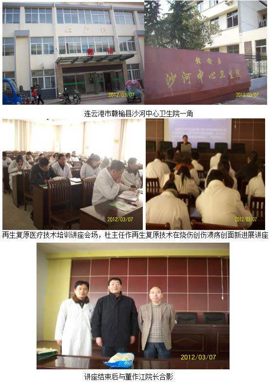 2012年3月7日下午14:00應(yīng)沙河鎮(zhèn)醫(yī)院董作江院長(zhǎng)兼外科主任的邀請(qǐng),杜主任一行為沙河醫(yī)院舉辦了“再生復(fù)原技術(shù)在燒傷創(chuàng)傷潰瘍創(chuàng)面應(yīng)用新進(jìn)展”技術(shù)講座。