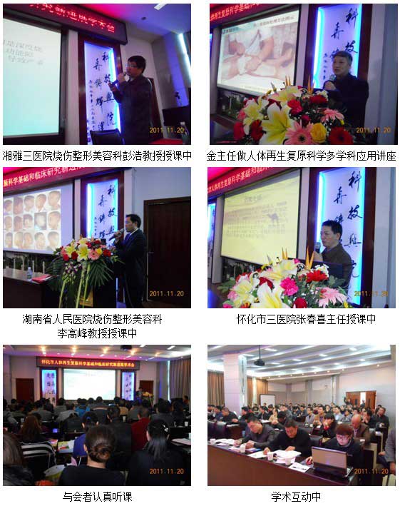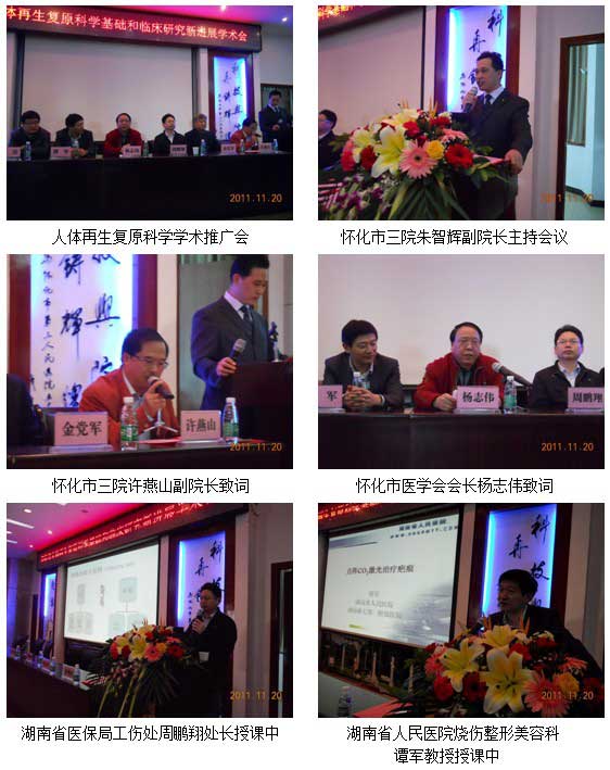 2011年11月20日,由湖南省中西醫(yī)結合學會燒傷專業(yè)委員會、懷化市衛(wèi)生局舉辦,懷化市三醫(yī)院承辦的再生醫(yī)療技術全區(qū)培訓在市三醫(yī)院多功能廳舉行,會議由朱副院長主持,邀請的湖南省內高級別專家有:湖南省醫(yī)保局工傷處周鵬翔處長、湖南省人民醫(yī)院燒傷整形美容科譚軍教授、湘雅三醫(yī)院燒傷整形美容科彭浩教授、中國中西醫(yī)結合學會燒傷專業(yè)委員會臨床部金黨軍教授、湖南省人民醫(yī)院燒傷整形美容科李高峰教授等。他們分別從人體再生復原科學、激光美容術后再生療法應用、大面積燒傷的再生醫(yī)療技術應用、再生醫(yī)療技術的多科室應用等方面對再生醫(yī)療技術進行實用技術培訓。其中湖南省醫(yī)保局工傷處周鵬翔處長結合本職工作及以前的臨床工作經(jīng)驗從三個方面進行了闡述,即:引領發(fā)展方向、搶占發(fā)展先機、學習最新技術。全面闡述了人體再生復原科學的基礎發(fā)展和臨床應用成果展示。最后,懷化市三院燒傷整形科主任張春喜介紹該院多年來在人體再生復原科學的臨床應用情況和成果展示。演講者精彩的講座博得了與會者的一陣陣熱烈的掌聲和一致好評。本次與會者有懷化地區(qū)各縣市工傷醫(yī)保局領導、各醫(yī)院相關科室負責人200多人,許多人沒能拿到資料,他們留下聯(lián)系方式,希望以后能夠收到。大會取得圓滿成功??!本次活動得到湖南美寶總裁汪波、區(qū)域經(jīng)理侯效東、區(qū)域經(jīng)理陳立新的大力支持。