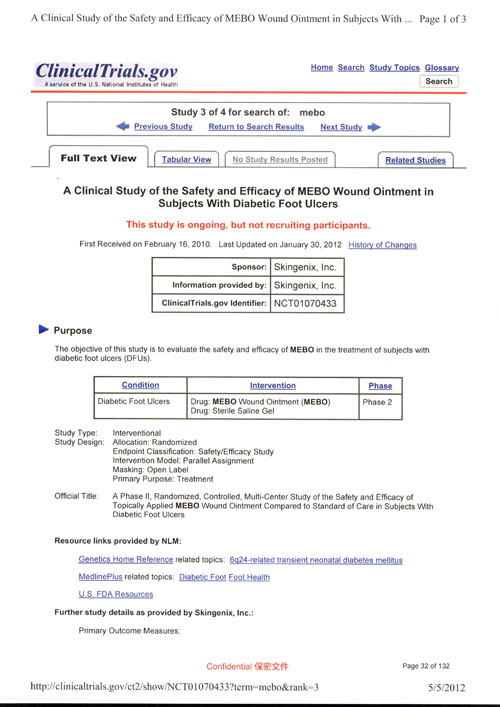 據(jù)悉,面對糖尿病潰瘍這種高發(fā)病率、高截肢率、高病死率及高復(fù)發(fā)率的無藥可醫(yī)的疾病,我國政府SFDA與美國政府FDA近期幾乎同一時間批準(zhǔn)原位再生皮膚技術(shù)的專用藥品美寶濕潤燒傷膏(MEBO)作為糖尿病潰瘍專用藥進(jìn)行臨床研究。這也是美國FDA批準(zhǔn)的第一個全植物營養(yǎng)成分的藥品臨床研究。