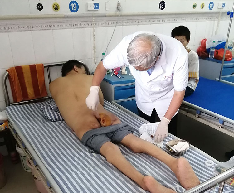 8月11日,北京榮祥再生醫(yī)學(xué)研究所副所長(zhǎng)、《中國(guó)燒傷創(chuàng)瘍雜志》編委金黨軍教授應(yīng)邀前往江西省吉安市永新縣人民醫(yī)院對(duì)一例久治不愈壓瘡患者進(jìn)行會(huì)診,金教授從查看病情到指定治療方案,最后親自示范換藥流程,全程贏得了科室醫(yī)生主任的高度認(rèn)可。