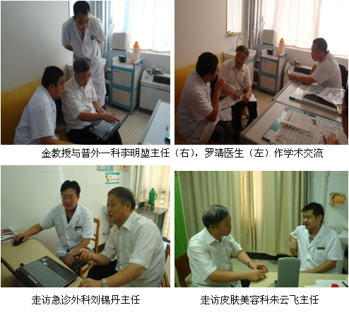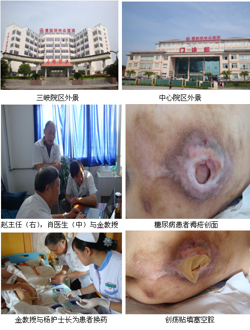 8月11日至8月13日,中國中西醫(yī)結(jié)合學(xué)會燒傷專業(yè)委員會金黨軍教授走訪了該醫(yī)院三峽院區(qū)和中心院區(qū)的部分科室。金教授在走訪期間分別與三峽院區(qū)外科趙延春主任、楊護(hù)士長,中心院區(qū)普外一科李明堃主任,急診外科劉錫丹主任和皮膚美容科朱云飛主任進(jìn)行了技術(shù)交流。趙延春主任在臨床一直推廣應(yīng)用濕潤燒傷膏和濕性醫(yī)療技術(shù)為大面積燒傷患者治療,非??隙ㄆ渥吭降呐R床療效。在金教授拜訪趙延春主任時,他正為一位因腹腔鏡手術(shù)插管形成的洞傷口患者應(yīng)用美寶創(chuàng)瘍貼換藥。在金黨軍教授向趙主任和科室骨干肖醫(yī)生介紹了目前再生醫(yī)療技術(shù)臨床實踐新進(jìn)展后,他們表示通過對皮膚再生醫(yī)療技術(shù)對創(chuàng)傷、潰瘍創(chuàng)面治療良好效果的考察,他們正在構(gòu)思創(chuàng)瘍特色專業(yè)科室的建立。