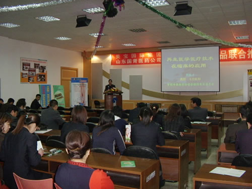 [2005年4月15日,山東濰坊]  2005年4月15日至17日,山東濰坊國(guó)青醫(yī)藥有限公司邀請(qǐng)了商業(yè)和醫(yī)院客戶(hù)舉行了“美寶系列產(chǎn)品推介會(huì)”,在三天的活動(dòng)中,安排了豐富的活動(dòng),國(guó)青醫(yī)藥下屬連鎖藥店店員參加了美寶產(chǎn)品知識(shí)培訓(xùn),并舉行了產(chǎn)品促銷(xiāo)。