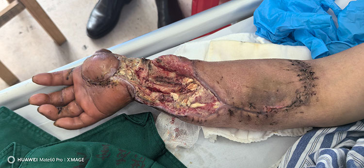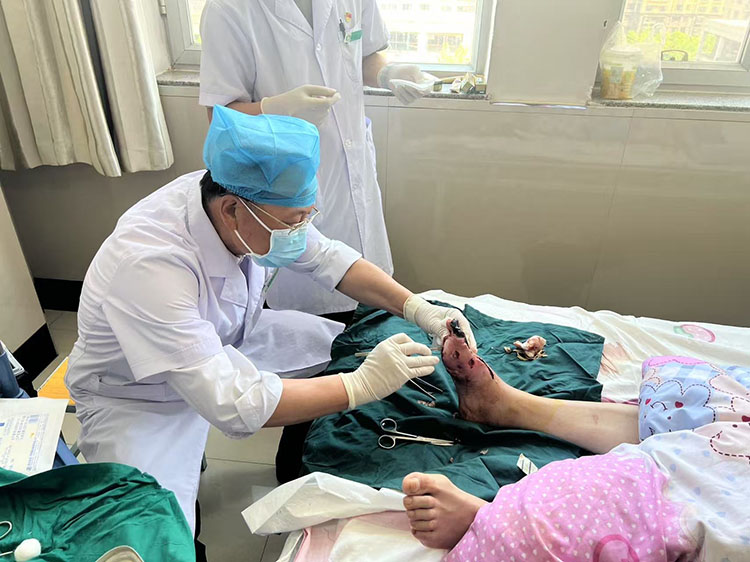 2025年5月14日,中國中西醫(yī)結(jié)合學會燒傷專業(yè)委員會常務委員、《中國燒傷創(chuàng)瘍雜志》副總編輯王洪生及醫(yī)療部宋小紅主任,應邀到珠海市第五人民醫(yī)院燒傷整形科會診一例嚴重三度化學燒傷病人和一例電擊燒傷患者,王洪生教授親自示范深度燒傷創(chuàng)面的清創(chuàng)處理,這次會診受到科室醫(yī)護和患者的一致好評。