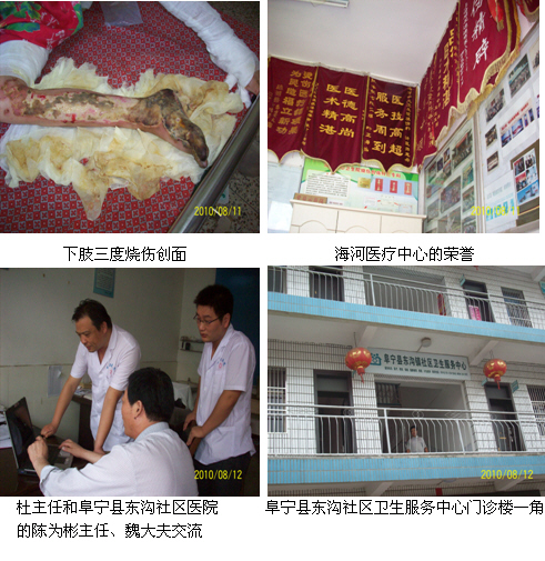 2010年8月9日~13日,中國中西醫(yī)結(jié)合學會燒傷專業(yè)委員會常委、中國燒傷創(chuàng)瘍雜志社常務(wù)編委、北京美寶燒傷創(chuàng)瘍研究所臨床部專家杜福勤教授和學會駐南京辦事處劉恒主任一同走訪了大豐市人民醫(yī)院、鹽城市鹽阜醫(yī)院、射陽縣海河燒傷醫(yī)療中心、濱海縣人民醫(yī)院、阜寧縣人民醫(yī)院、阜寧婦幼醫(yī)院、阜寧仁慈醫(yī)院、阜寧縣東溝社區(qū)服務(wù)中心。