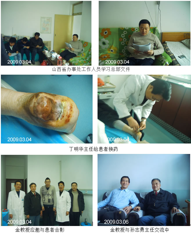 2009年3月6日和3月7日??〗芎徒鸾淌诜謩e走訪了長治潞城市人民醫(yī)院、長治長鋼醫(yī)院、晉城市人民醫(yī)院、晉城市長城醫(yī)院,就再生醫(yī)療技術(shù)的臨床應(yīng)用及其新產(chǎn)品速愈貼的推廣分別與科主任進(jìn)行了交流,并初步達(dá)到共識,長鋼醫(yī)院在近期內(nèi)可以實現(xiàn)臨床應(yīng)用,并與長城醫(yī)院馮院長初步計劃于3月份在長城醫(yī)院舉辦一次較大規(guī)模全晉城市基層醫(yī)療工作者的培訓(xùn)。