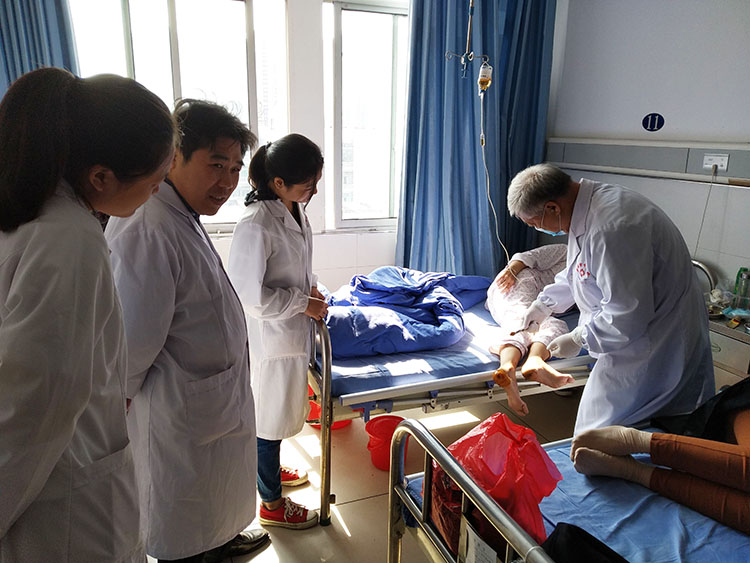 11月6日,中國中西醫(yī)結(jié)合學會燒傷專業(yè)委員會金黨軍教授來鄂州市中醫(yī)醫(yī)院外科會診壓瘡患者。