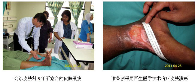 全院的學(xué)術(shù)報(bào)告結(jié)束后,陳教授先后應(yīng)邀到骨科、整形燒傷科、創(chuàng)面治療中心、皮膚科等科室進(jìn)行再生醫(yī)學(xué)臨床技術(shù)培訓(xùn),先后培訓(xùn)了醫(yī)護(hù)人員400多名。期間,陳教授還先后應(yīng)邀到燒傷整形科、兒科研究所燒傷中心、創(chuàng)傷骨科、創(chuàng)面治療中心、婦產(chǎn)科、皮膚科等科室和部門,會診指導(dǎo)了燒傷、創(chuàng)傷、潰瘍、外科和皮膚科難愈合創(chuàng)面14例的治療,指導(dǎo)和示范微粒皮種植培養(yǎng)再生技術(shù)1例,均獲得理想的臨床效果。再生醫(yī)學(xué)的臨床效果在吉隆坡中央醫(yī)院已經(jīng)得到充分的肯定和認(rèn)可,再生醫(yī)學(xué)技術(shù)在吉隆坡中央醫(yī)院的地位變得不可替代和不可動(dòng)搖。以下是部分工作圖片,和讀者共同分享。