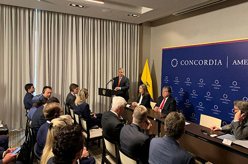 本次峰會由哥倫比亞總統(tǒng)馬爾克斯發(fā)表主旨演講,介紹了哥倫比亞的發(fā)展狀況。與會的還有哥倫比亞第一夫人、哥倫比亞副總統(tǒng)及各部部長、美國各部部長、洪都拉斯及哥斯達黎加副總統(tǒng)、克林頓基金會CEO等眾多政商界和非政府機構重要人物就數(shù)字經(jīng)濟、難民救助、合作發(fā)展等重大社會議題展開對話協(xié)商。