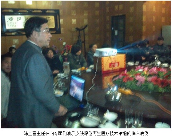 2012年11月4日,中國(guó)中西醫(yī)結(jié)合學(xué)會(huì)燒傷專(zhuān)業(yè)委員會(huì)、北京美寶燒傷創(chuàng)瘍研究所臨床部專(zhuān)家陳全喜和河南技術(shù)推廣責(zé)任人賀杰鋒應(yīng)邀來(lái)到了商丘市寧陵縣。下午5點(diǎn)對(duì)寧陵縣人民醫(yī)院外科,中醫(yī)院外科、婦產(chǎn)科,婦幼保健院婦產(chǎn)科二十一位科主任護(hù)士長(zhǎng)進(jìn)行皮膚原位再生醫(yī)療技術(shù)的培訓(xùn)。