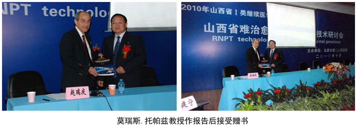 趙瑞慶教授在會(huì)議期間代表中國(guó)中西醫(yī)學(xué)會(huì)燒傷專業(yè)委員會(huì)向以色列創(chuàng)傷專家莫瑞斯•托帕茲在參與救治汶川大地震中受傷的小齊洋表示了衷心感謝,并贈(zèng)送了《人體再生復(fù)原科學(xué)》專著一部。