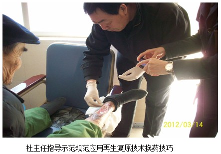 2012年3月13日~14日應(yīng)大外科金瑞主任和醫(yī)務(wù)處方衛(wèi)東主任的邀請(qǐng),中國(guó)中西醫(yī)結(jié)合學(xué)會(huì)燒傷專業(yè)委員會(huì)常委、北京美寶燒傷創(chuàng)瘍研究所臨床部主任、燒傷創(chuàng)瘍專家杜福勤主任與學(xué)會(huì)駐宣城市吳崇巍同志應(yīng)邀為中心醫(yī)院外科、糖尿病科、骨科、腫瘤??谱髁恕霸偕鷱?fù)原技術(shù)在燒傷創(chuàng)傷潰瘍創(chuàng)面的治療新進(jìn)展”學(xué)術(shù)講座。下午15:00講座開始,大外科金瑞主任主持,醫(yī)生護(hù)士50余人參加了學(xué)習(xí),院醫(yī)務(wù)處方衛(wèi)東主任、科教科劉朝明主任、普外科姜主任等參加講座學(xué)習(xí),杜主任利用多媒體圖文并茂,通俗易懂的進(jìn)行了講解,講座進(jìn)行了兩個(gè)多小時(shí),講座結(jié)束時(shí)杜主任和姜主任就燒傷創(chuàng)面、創(chuàng)傷創(chuàng)面、潰瘍創(chuàng)面臨床有關(guān)創(chuàng)面治療進(jìn)行了交流,回答了臨床遇到的問題,并和丁昊醫(yī)師多次示范應(yīng)用MEBO燒傷膏和創(chuàng)瘍貼為下肢潰瘍患者規(guī)范換藥,為推廣再生復(fù)原醫(yī)療技術(shù)奠定了良好基礎(chǔ),達(dá)到了深入推廣再生復(fù)原醫(yī)療技術(shù)地目的,深受醫(yī)護(hù)人員的歡迎。