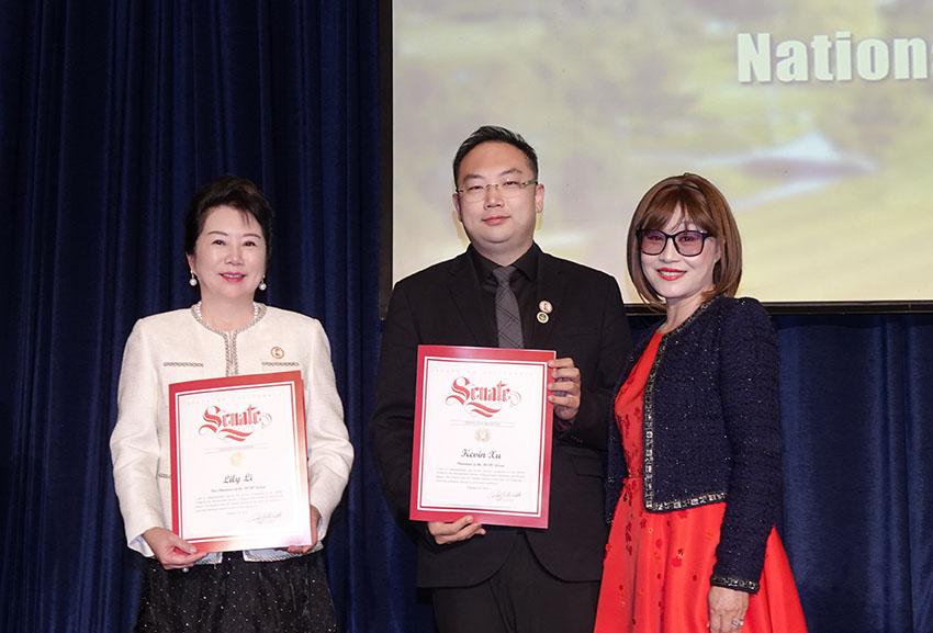 論壇后,ISRMWR組織了2024年國際再生醫(yī)學(xué)日招待晚宴,前核桃市市長蘇王秀蘭代表加州參議員Bob J. Archuleta向ISRMWR主席、美寶集團董事局主席徐鵬以及徐榮祥基金會主席、美寶集團董事局李俐頒發(fā)了榮譽證書,證書中祝賀美寶集團獲得ISRMWR的特別認可,并預(yù)祝集團在今后的努力中取得更大的成功。Walnut市議員Allen Wu向徐榮祥基金會頒發(fā)證書,以此紀(jì)念2024年國際再生醫(yī)學(xué)日晚宴并慶祝大會圓滿成功。