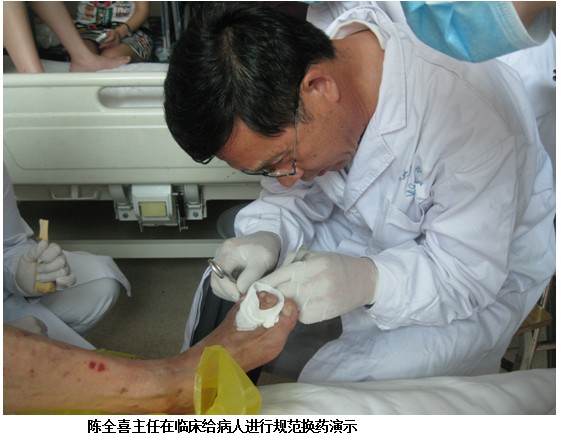 2012年5月22日,中國中西醫(yī)結(jié)合學(xué)會(huì)燒傷專業(yè)委員會(huì)委員,北京美寶燒傷瘡瘍研究所臨床部技術(shù)推廣專家陳全喜主任應(yīng)河南鄭州大學(xué)第一附屬醫(yī)院內(nèi)分泌科孫主任的邀請,對(duì)糖尿病患者右腳潰瘍創(chuàng)面會(huì)診。