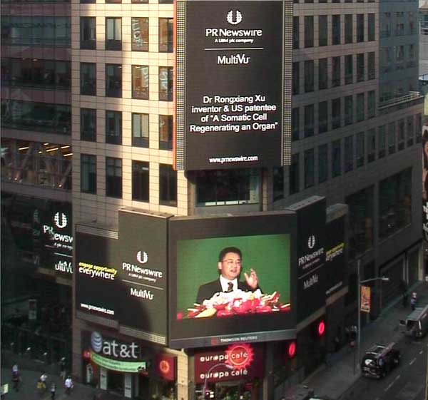 路透社紐約時(shí)代廣場(chǎng)報(bào)道徐榮祥發(fā)明體細(xì)胞再生器官