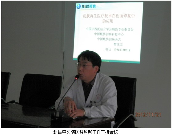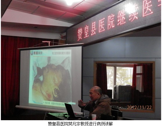 2012年11月21日至22日,中國中西醫(yī)結(jié)合學(xué)會燒傷專業(yè)委員會委員、《中國燒傷創(chuàng)瘍雜志》編委樊兆宗教授應(yīng)邀分別于河北省趙縣中醫(yī)院和河北省贊皇縣醫(yī)院進行授課。