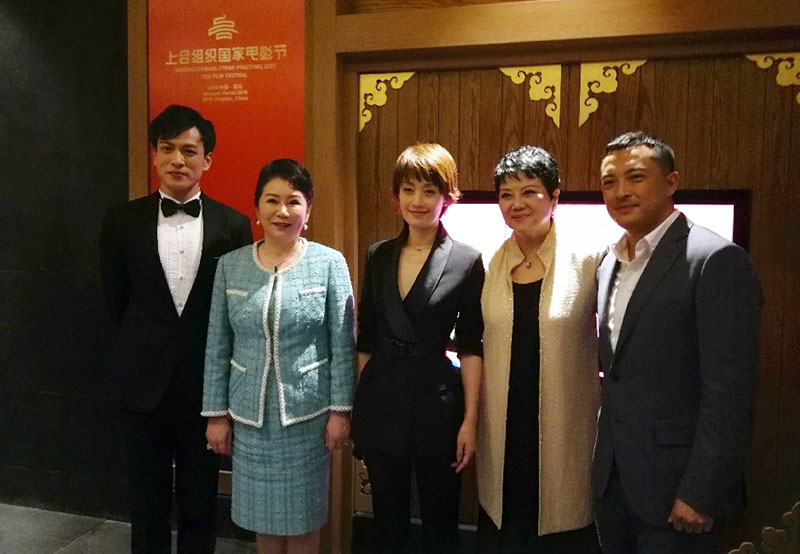 當(dāng)晚,李俐(左二)作為胡玫電影《進京城》制片之一和導(dǎo)演胡玫(右二)演員富大龍(右一)演員馬伊琍(中)演員馬敬涵(左一)共同出席了上合組織國家電影節(jié)開幕式,拉開了此次將有近60部上合組織國家的優(yōu)秀影片的展映和評獎,一場國際影視盛會就此開啟。CCTV6電影頻道對此次活動進行了全程直播。