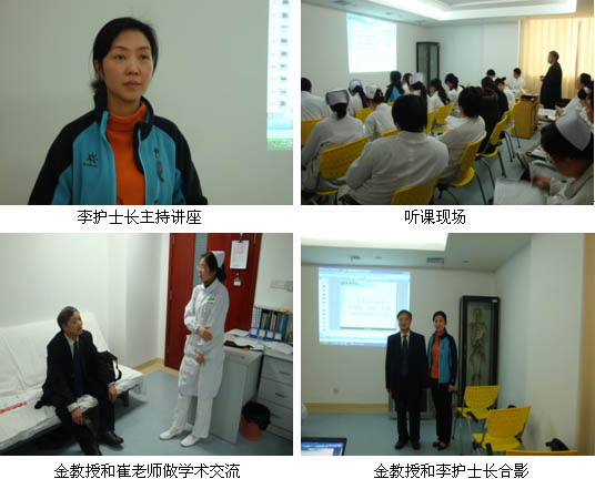 首先由李護(hù)士長致詞,隨后金主任向?qū)W員們介紹了燒傷濕潤暴露療法,闡述了燒傷皮膚原位再生醫(yī)療技術(shù)原理,與傳統(tǒng)醫(yī)學(xué)療法相比再生醫(yī)療技術(shù)的優(yōu)越性等;著重講解了暴露療法、半暴露療法和包扎療法的操作方法及要點(diǎn);通過臨床病例圖片側(cè)重分析褥瘡、典型糖尿病足、下肢潰瘍等外科常見創(chuàng)傷治療前后過程,理想的愈合效果讓學(xué)員們對再生醫(yī)療技術(shù)有了更深刻的認(rèn)識,得到了在場領(lǐng)導(dǎo)及學(xué)院的認(rèn)可,兩小時(shí)的授課結(jié)束后,李護(hù)士長和金教授一同會診了一位潰瘍創(chuàng)面的患者,金教授耐心地示范和講解了創(chuàng)瘍貼的使用方法。