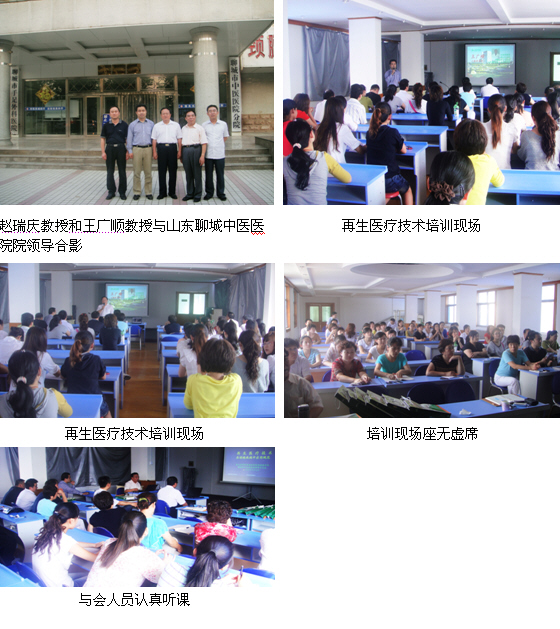 2010年9月11日,中國中西醫(yī)結(jié)合學會燒傷專業(yè)委員會副主任趙瑞慶教授,燒傷專業(yè)委員會常委王廣順教授應(yīng)山東聊城中醫(yī)醫(yī)院邀請,在聊城辦事處許嫻同志的陪同下,于當日下午15:00至18:00在該院多功能會議室對該院的62位醫(yī)護人員進行了燒傷再生醫(yī)學技術(shù)的院內(nèi)培訓(xùn),培訓(xùn)內(nèi)容包括:(1)再生醫(yī)學22年的發(fā)展歷史;(2)原位干細胞再生修復(fù)燒傷創(chuàng)面的機理;(3)燒傷再生醫(yī)學創(chuàng)面處理原則、以及規(guī)范操作方法;(4)早期使用疤痕軟膏治療疤痕的臨床效果;(5) 再生醫(yī)學技術(shù)在多學科應(yīng)用的情況,同時利用大量的病例圖片向大家介紹了創(chuàng)瘍貼治療燒傷、皮膚創(chuàng)傷和潰瘍創(chuàng)面的良好治療效果,再生醫(yī)療技術(shù)已實現(xiàn)了全部和部分器官的原位再生。通過三個小時講座使參會的醫(yī)務(wù)人員受益匪淺,該院姚常偉院長表示要盡快引進此項技術(shù),在醫(yī)院全面開展治療燒傷、皮膚創(chuàng)傷、潰瘍疾病,造福于山東聊城的廣大人民群眾。會后趙瑞慶教授和姚常偉院長給洽談了有關(guān)進一步引進此項技術(shù)的其它事宜。