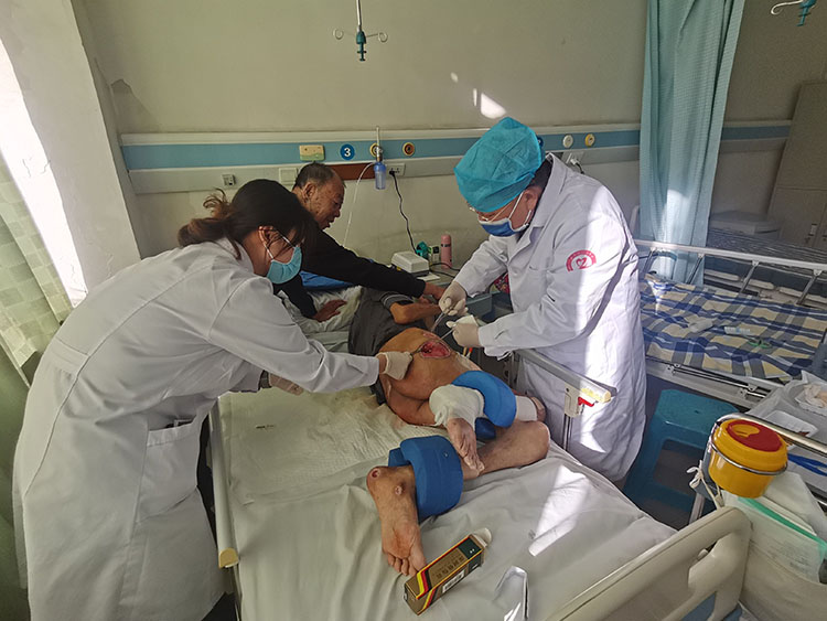 2024年12月27日,應(yīng)同煤二醫(yī)院、懷仁市中醫(yī)院邀請(qǐng),《中國(guó)燒傷創(chuàng)瘍雜志》常務(wù)編委、燒傷創(chuàng)瘍?cè)偕t(yī)療技術(shù)臨床專家趙瑞慶,在該醫(yī)院六例慢性創(chuàng)面病人(1例燒傷,5例多部位嚴(yán)重壓瘡,其中3例深度感染),會(huì)診結(jié)束后,會(huì)同科室人員展開(kāi)重病病例討論,強(qiáng)調(diào)注意事項(xiàng),制定進(jìn)一步治療方案,受到當(dāng)?shù)蒯t(yī)護(hù)人員的熱情稱贊。