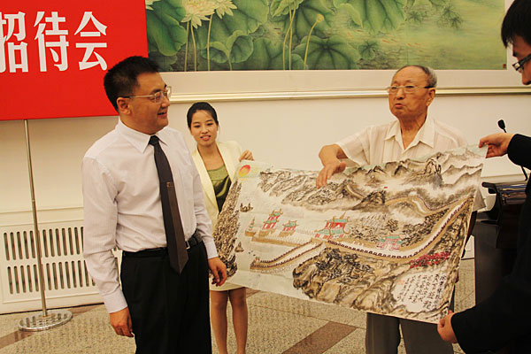 令人感動的場面出現(xiàn)了,來自山東威海、86歲的王瑞榮老先生也走到了前臺,他曾經(jīng)很不幸,罹患了肺癌腺癌(臨終晚期),但是他又非常幸運(yùn),遇到了徐榮祥教授,加入了再生抗癌研究計(jì)劃,成為人體再生復(fù)原科學(xué)的受益者,讓他以86歲的高齡獲得了重生。老人現(xiàn)在精神矍鑠,底氣十足,步履穩(wěn)健,自我感覺越活越年輕,面前的這位充滿活力的老人,難以想象這是個(gè)癌癥患者,甚至很難相信他已是耄耋之年。為了表達(dá)他的感激之情,特地為徐教授送上他自己作的畫,對于樸實(shí)的老人,感激語言已經(jīng)難以表達(dá)他的內(nèi)心感受,唯希望通過畫來表達(dá)他的心聲。