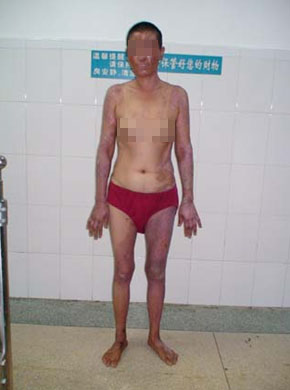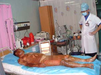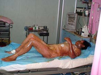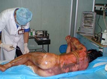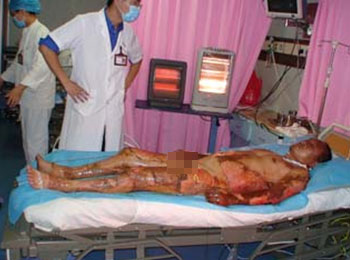 2006年9月11日晚7點(diǎn),廣州花都中醫(yī)院ICU病房急診收入兩例成人大面積燒傷患者,該兩例患者為該區(qū)某造紙廠工人,在入院前1小時(shí),工作中因蒸汽管道泄漏致蒸汽燒傷。病例一、患者江某、男36歲,入院診斷:全身蒸汽燒傷總面積70%(淺二度15%、深二度45%、淺三度10%);病例二、患者江某、女、42歲,入院診斷:全身蒸汽燒傷總面積72%(淺二度7%、深二度50%、淺三度15%)?;颊呷朐汉?,該院立即成立了以主管院長(zhǎng)劉樹華和大外科主任張向東為首的搶救領(lǐng)導(dǎo)小組,并邀請(qǐng)北京美寶燒傷創(chuàng)瘍研究所王洪生研究員進(jìn)行全程臨床指導(dǎo),對(duì)該兩例患者創(chuàng)面處理全程采用燒傷皮膚原位再生醫(yī)療技術(shù),結(jié)合全身抗休克、抗感染、營(yíng)養(yǎng)支持、臟器功能保護(hù)等綜合治療,經(jīng)過一個(gè)月的治療,兩例患者順利渡過休克關(guān)、感染關(guān),淺、深創(chuàng)面均實(shí)現(xiàn)了表皮化愈合,目前,該兩例患者燒傷已痊愈,正在該院接受康復(fù)期治療。