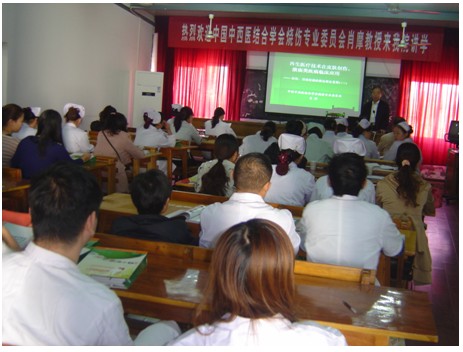 2012年10月18日宣城市再生醫(yī)療技術(shù)培訓(xùn)班如期舉辦。學(xué)術(shù)活動(dòng)由安徽技術(shù)推廣辦事處和宣城市中醫(yī)院聯(lián)合舉辦。宣城市中醫(yī)院是經(jīng)國(guó)家批準(zhǔn)的二級(jí)非營(yíng)利性醫(yī)療機(jī)構(gòu),應(yīng)用再生醫(yī)療技術(shù)已經(jīng)二十余年。會(huì)議由該院張書(shū)記主持,張書(shū)記是應(yīng)用MEBT/MEBO多年,并積累了豐富臨床經(jīng)驗(yàn)的專(zhuān)家。來(lái)自大外科主任兼業(yè)務(wù)院長(zhǎng)唐院長(zhǎng)、骨科裴主任、婦產(chǎn)科楊主任、糖尿病科楊主任、內(nèi)科護(hù)士長(zhǎng)等相關(guān)專(zhuān)業(yè)醫(yī)護(hù)人員近100人聆聽(tīng)了肖摩教授“中西醫(yī)結(jié)合創(chuàng)面治療新進(jìn)展”學(xué)術(shù)報(bào)告。大量真實(shí)的臨床病例圖片和圖像,將再生復(fù)原療法在難愈性創(chuàng)瘍創(chuàng)面、潰瘍創(chuàng)面、糖尿病足、褥瘡創(chuàng)面的規(guī)范化處理方法與技巧、注意事項(xiàng)等進(jìn)行了細(xì)致地講解,并對(duì)婦產(chǎn)科和肛腸科遇到的棘手創(chuàng)面進(jìn)行了講解。會(huì)議結(jié)束后肖摩教授還應(yīng)骨科邀請(qǐng),到病房會(huì)診癌癥潰瘍的患者。