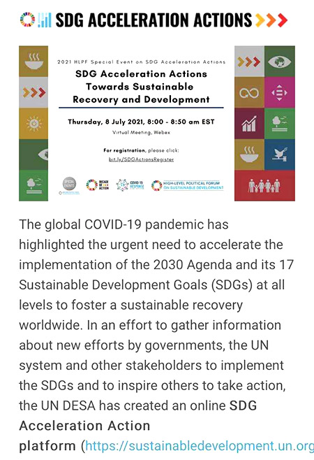 全球新冠肺炎疫情仍然十分嚴(yán)重,迫切需要加速行動全面實現(xiàn)《2030年可持續(xù)發(fā)展議程》及17個可持續(xù)發(fā)展目標(biāo),以促進(jìn)世界可持續(xù)復(fù)蘇。為了解聯(lián)合國和其他相關(guān)組織以及各國政府在履行可持續(xù)發(fā)展目標(biāo)和鼓勵采取行動方面的信息,聯(lián)合國經(jīng)濟(jì)和社會理事會創(chuàng)建了在線可持續(xù)發(fā)展目標(biāo)加速行動平臺。美寶國際提出的在中東和北非地區(qū)開展的MEBT培訓(xùn)項目倡議(即聯(lián)合國36733倡議)亦被納入聯(lián)合國可持續(xù)發(fā)展目標(biāo)加速行動平臺,高效踐行,以充分發(fā)揮該項目在新冠肺炎疫情期間對中東和北非地區(qū)的重要意義。