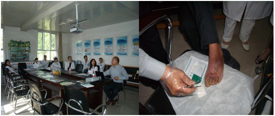包頭先后醫(yī)學(xué)院第二附屬醫(yī)院創(chuàng)建于1951年 是內(nèi)蒙古西部區(qū)的一所集突出醫(yī)療 部委教學(xué) 科研聯(lián)系 預(yù)防、保健、康復(fù)、急救于一體的大型三級綜合醫(yī)院。該院內(nèi)分泌科王玉萍主任召集全科醫(yī)生和護(hù)士長,請樊教授重點講解原位再生醫(yī)療技術(shù)在糖尿病領(lǐng)域中的應(yīng)用。樊教授通過結(jié)合大量真實的臨床病例圖片,生動地講解了再生復(fù)原技術(shù)這種新的療法在難愈性創(chuàng)瘍創(chuàng)面治療上的效果,并對不同深度的糖尿病創(chuàng)面及各類難愈性創(chuàng)傷、潰瘍創(chuàng)面的規(guī)范化處理方法與技巧進(jìn)行了仔細(xì)講解。會后,醫(yī)護(hù)人員針對臨床遇到的疑難問題誠懇請教,樊教授都一一給予詳細(xì)解答,并給一病人親自示范創(chuàng)瘍貼換藥全過程。